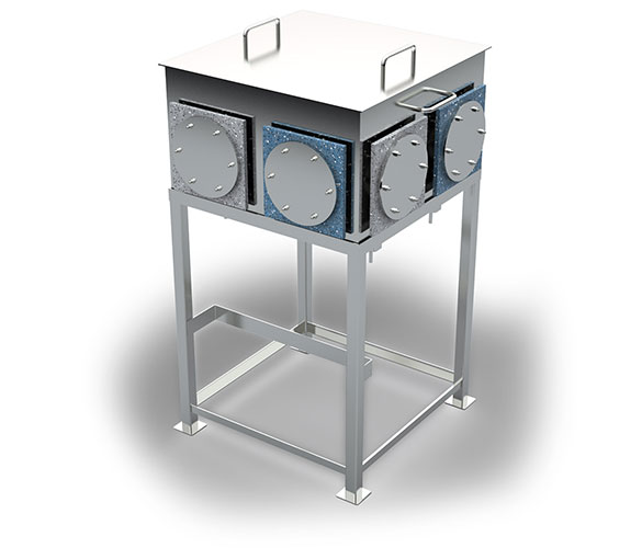 Um die Haltbarkeit jedes individuellen Beckens unter realen Bedingungen zu testen, wird ein Muster (meist der Skimmerplatte) jedes produzierten Pools auf Osmosebeständigkeit überprüft. Die Beckenmuster werden 5 Tage in deionisiertem Wasser bei einer Temperatur von 80°C getestet. Dieser Prozess entspricht einer Nutzung von 10 Jahren in der Realität. Nur so können Sie sicher gehen, dass Ihr Pool vor Osmose geschützt ist!