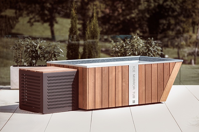 Der ICE MIRROR TUB ist ein kompakter Premium‑Eispool aus Edelstahl mit Natursteinumrandung und Echtholzverkleidung. Er kombiniert Kälte‑ und Wärmetherapie (0–40 °C) in einem Plug‑and‑Play‑Designbecken für ganzjährige Nutzung.